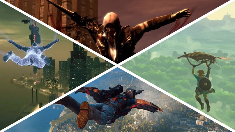 Hey all, this piece is a sequel to an earlier piece I did about running in games. Now I want to look at how characters glide in games. Recently I’ve been playing Just Cause 3 which got me thinking about its movement style. In Just Cause 3, you use a tether to grapple to a surface. If you press another button, your parachute deploys. If you press another button after that, you change into your wingsuit. The tether acts as a grappling hook from point A to point B. The parachute gives you an initial boost of height and then a slow descent to the ground. The wingsuit acts as a glide. While using the parachute or the wingsuit, using the tether will guide your flight and if used properly allow you to stay airborne. So, while thinking on this I was reminded of some other games whose movement is based on gliding and how that mechanic informs the game being played.